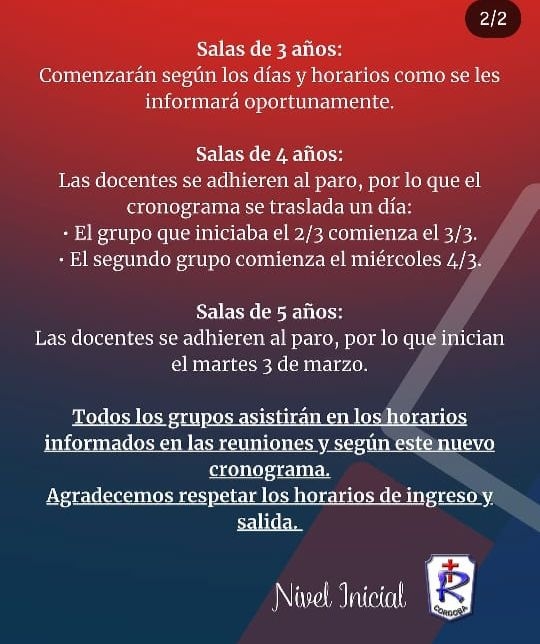 Comienzo de ciclo lectivo 2026 - Nivel inicial